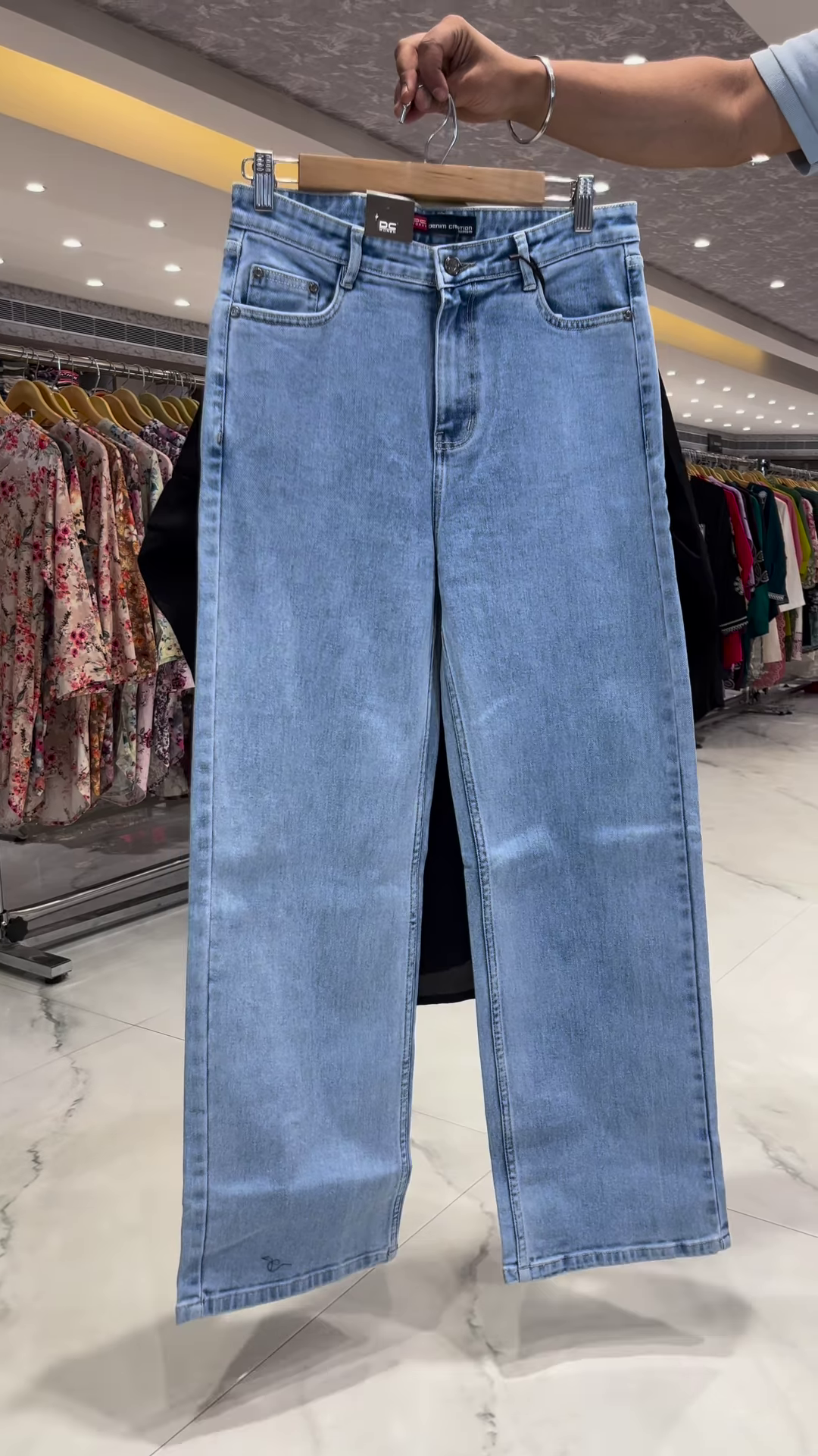 Paired with light-wash denim straight-fit pants, the set gains a modern edge. The contrast between the classic black kurti and contemporary jeans offers a balanced, trend-forward look that appeals to all age groups. The denim pants are tailored for comfort and style, offering a flattering silhouette that complements the kurtiβs flair.
