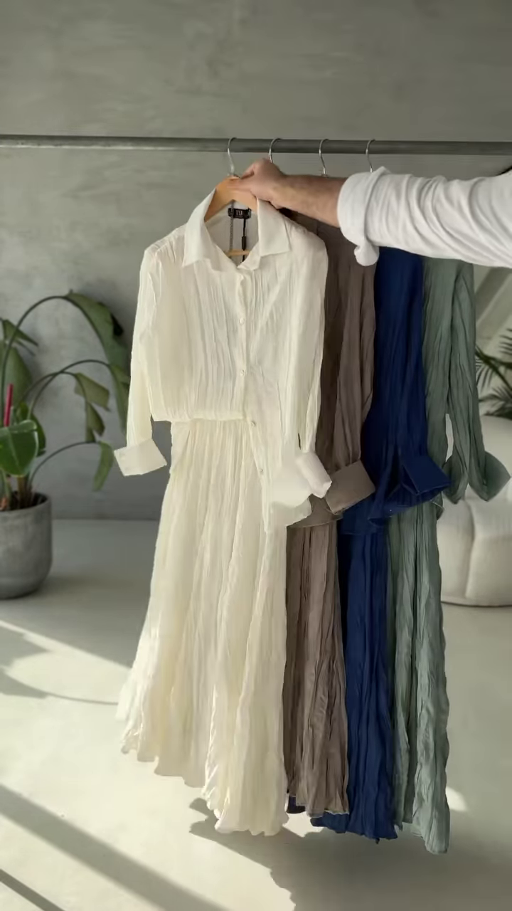 From morning coffee runs to evening beach strolls, this versatile wardrobe essential can be worn as a dress, layered over your favorite camisole and trousers, or styled open like a duster. The button-down silhouette, classic collar, and cuffed sleeves add a hint of structure to the otherwise relaxed form, giving you endless styling possibilities across seasons.