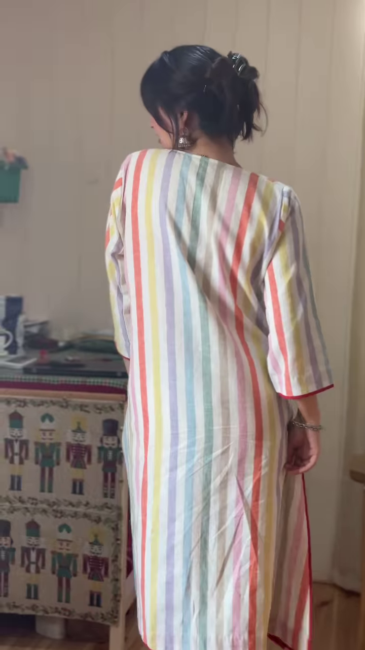 Casual outings, festive brunches, or relaxed get-togethers where comfort meets style. Pair it with silver jhumkas and flats for a complete look.